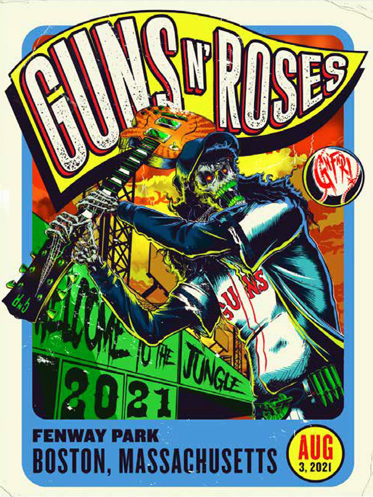 is a reference to Fenway's "Green Monster" in left field. The design pays homage to Topps baseball cards from the 1960s. |