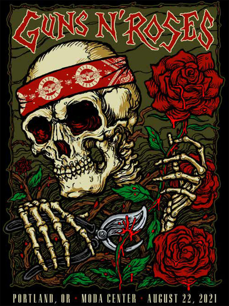 The design references both the city of Portland's nickname, "The City of Roses" as well as the song "Garden of Eden" from Use Your Illusion I.