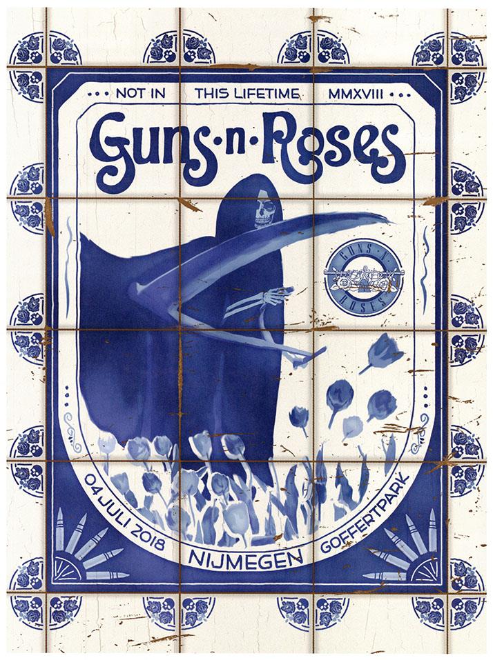 The lithograph depicts the famous glazed tile pattern known as Delftware, made in and around the Delft region of the Netherlands.