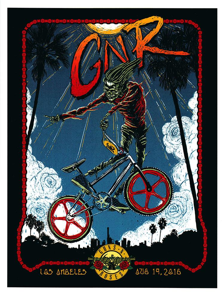 surfing-themed lithograph. The "GNR" title is stylized in an homage to the cult BMX film "Rad" from 1986. |