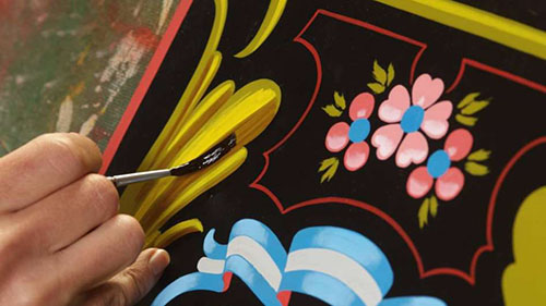 Reference: Fileteado is a type of art commonly used in Buenos Aires. It is a flowing style full of embellishments used to decorate various objects from buildings and signs to vehicles and clothing.